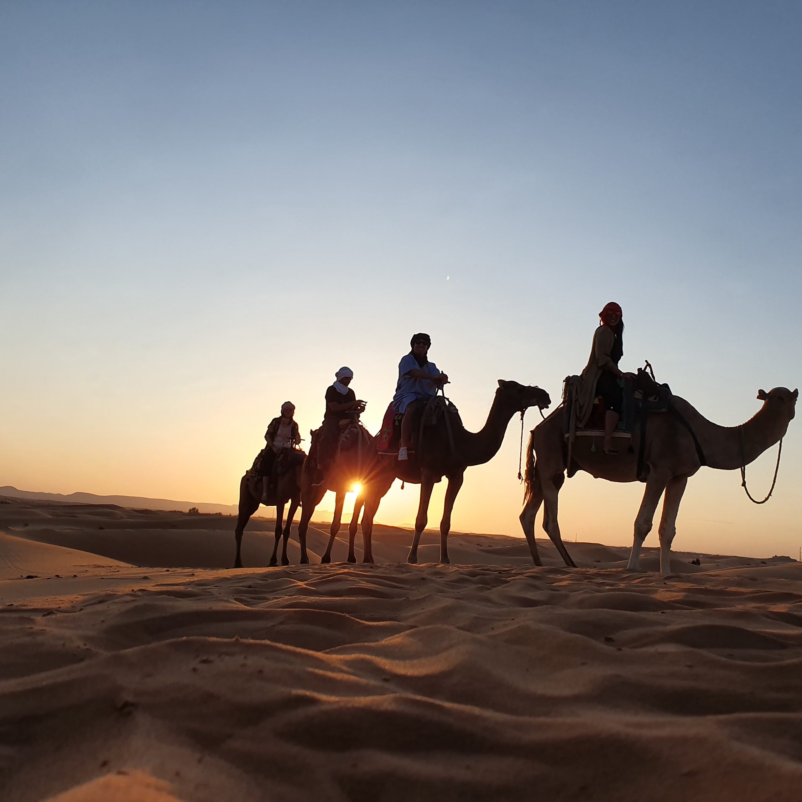 A private trip to Morocco is not complete without Sahara Desert Experience, the camel trekking, unforgettable night experience in a luxury tent, an amazing Sunset and sunrise, and ending the Sahara night with a Berber bonfire jam session.
